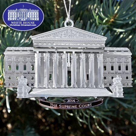 The Official Unites States Supreme Court ornament. This three dimensional silver-plated ornament accurately depicts the main entrance of the Court.