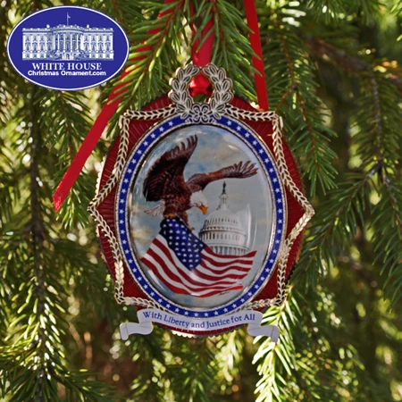 The Pledge of Allegiance Ornament is designed to reflect our loyalty to the flag of the republic of the United States of America. The Pledge of Allegiance was composed by Francis Bellamy in 1892 and formally adopted by Congress in 1942. According to the Flag Code, the Pledge “should be rendered by standing at attention facing the flag with the right hand over the heart. When not in uniform, men should remove any non-religious headdress with their right hand and hold it at the left shoulder, the hand being over the heart. Persons in uniform should remain silent, face the flag, and render the military salute. According to the United States Flag Code, the Pledge of Allegiance reads: